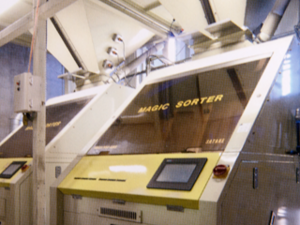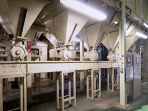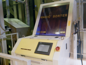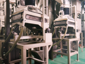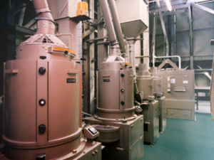 最新鋭の機械設備をコンピュータにより制御、管理する醸造精米システムを導入したレベルの高い精米工場です。先端の技術をふんだんに盛り込む事により、瞬間歩留り(総合歩留りと真正歩留り)を正確かつ自動的に計測して常に安定した搗精を実現するなど、生産性の向上と搗精歩留りの向上、そして高品質白米の生産を可能としました。